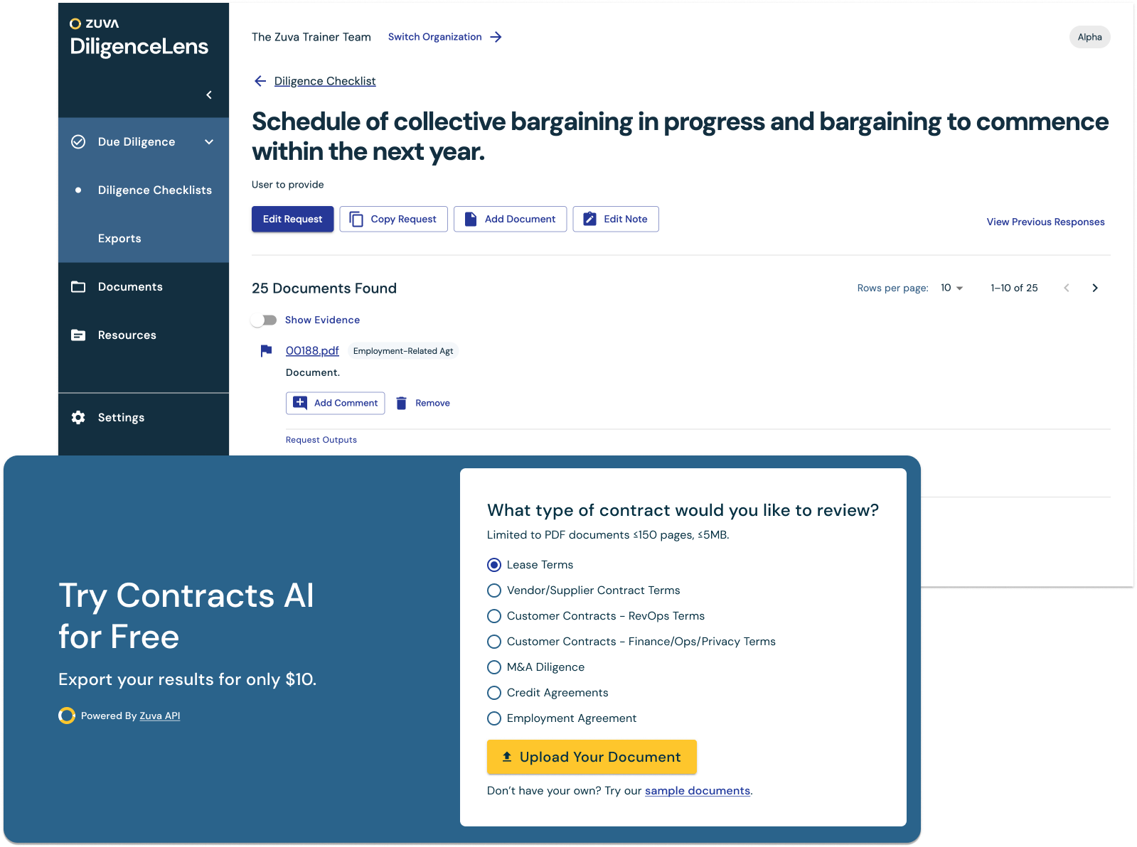 Selling a business takes a lot of work. With DiligenceLens you can automate your contract review using the same technology as the world’s best lawyers! You’ll save time and get more accurate results than you would manually reviewing documents.