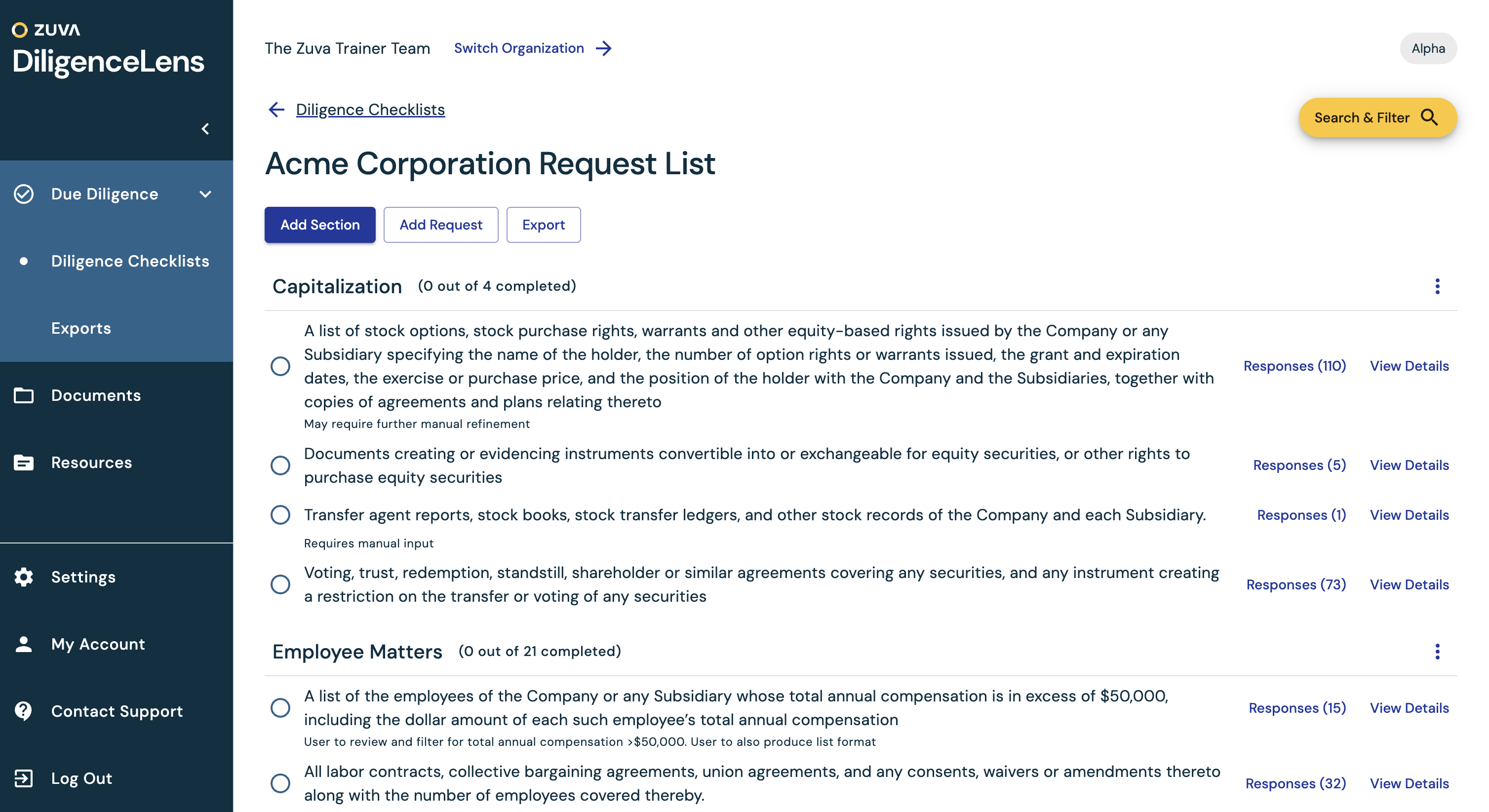 No matter where you are in the M&A due diligence process, DiligenceLens has a tool to help.